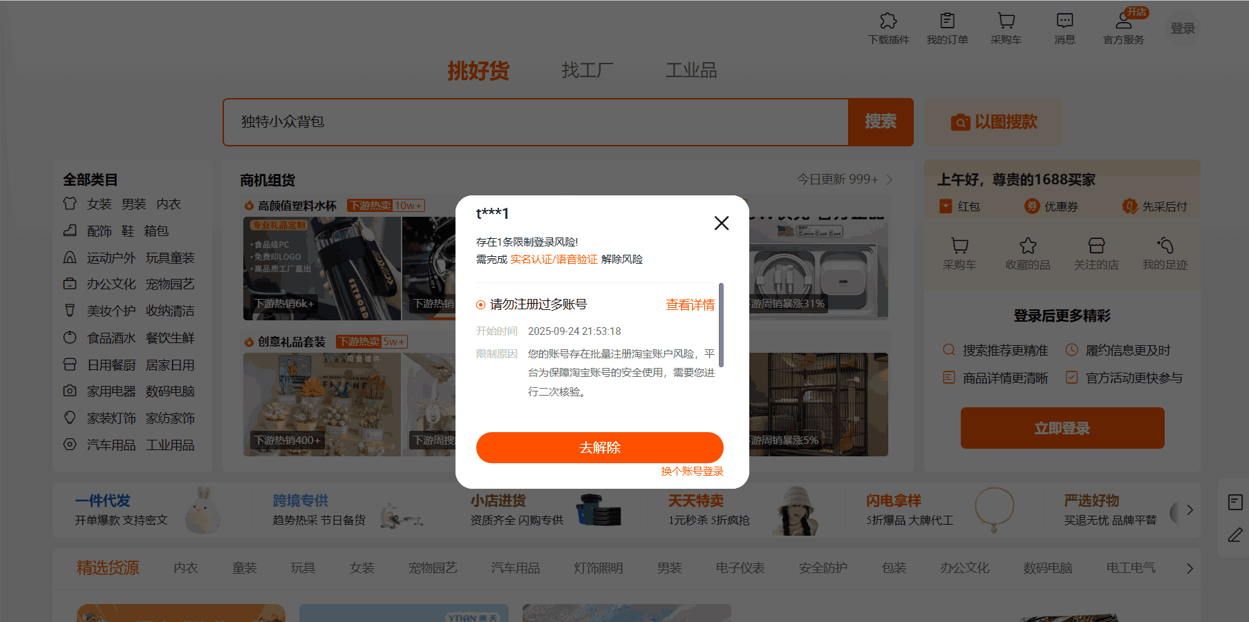 1688 — багатофункціональна платформа, але її головна перевага полягає у низьких цінах та величезному виборі компаній, оптовиків та фабрик. Пошук постачальників у Китаї варто починати саме на ній, але спочатку потрібно зареєструватися.
