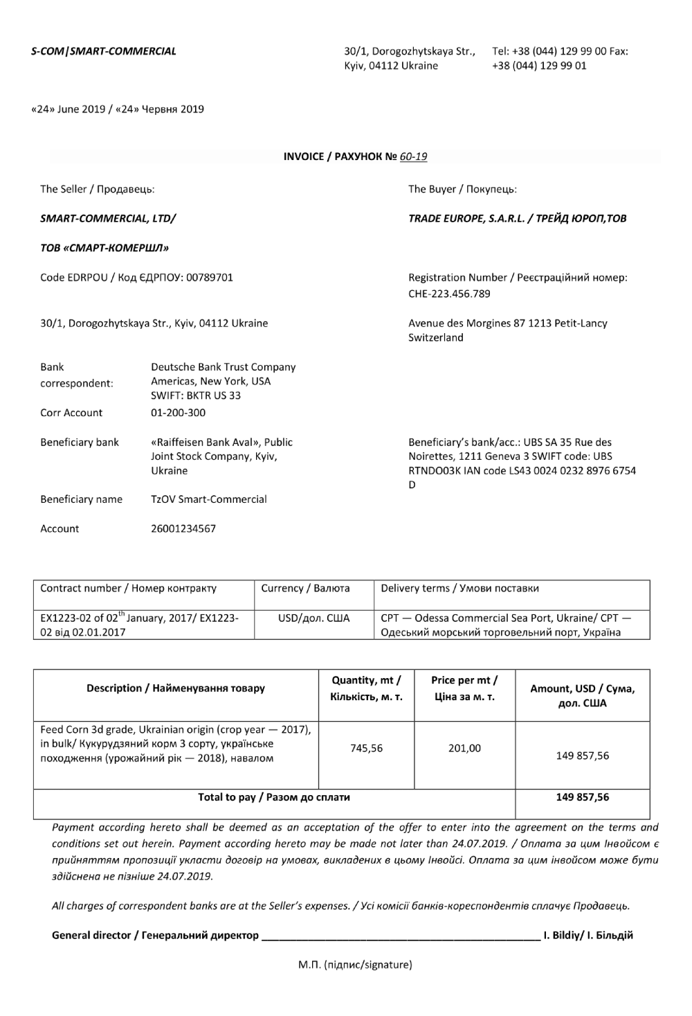 If the shipment is made by a legal entity, the invoice is certified with a seal and signature; if by an individual — only a signature is required. During international logistics services, the document is filled out in two languages (English and the language of the destination country).
